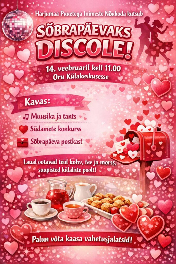 14.02.2026 Sõbrapäeva disco Oru Külakeskuses Harjumaa erivajadustega inimestele.